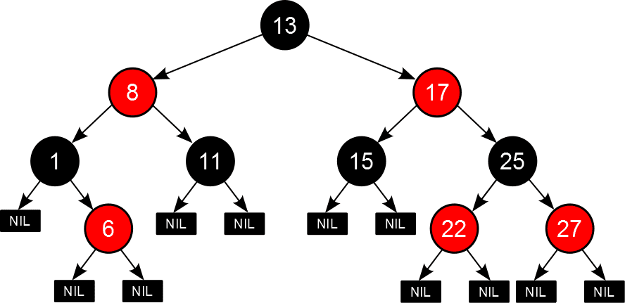 - 对于任意结点而言,其到叶结点树尾端NIL指针的每条路径都包含相同数目的黑结点。(路径下黑相同)