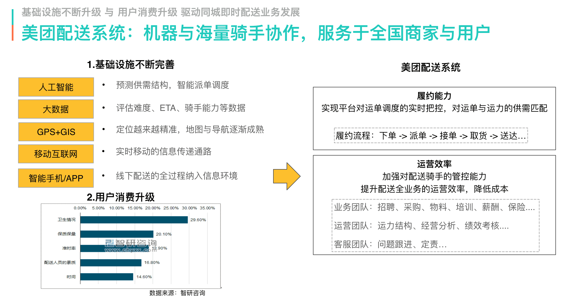 市场方面,由于中国人口具有超大规模性的特点,人群聚集度高,外卖等到家场景在各大城市尤其是一线城市的需求持续增强。用户对于外卖的安全、时效、配送员的服装、礼貌用语等都有更高的要求。