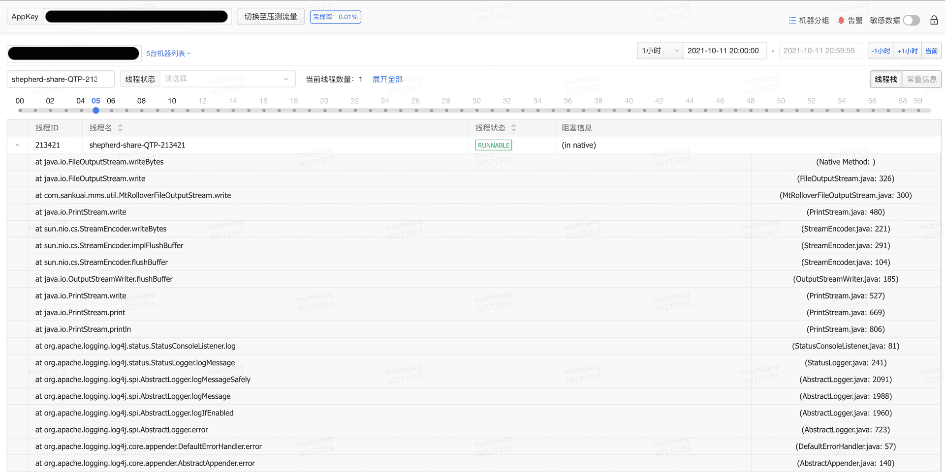 - 建议日志配置文件中对所有Appender的PatternLayout都增加%ex配置,因为如果没有显式配置%ex,则异常格式化输出的默认配置是%xEx,此时会打印异常的扩展信息(JAR名称和版本),可能导致业务线程Block。
