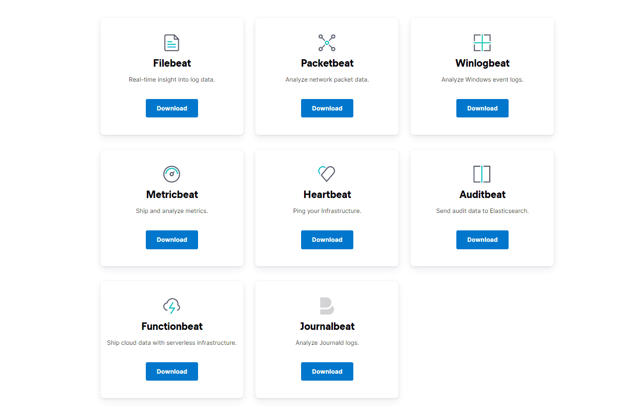 Beats是一个面向轻量型采集器的平台,这些采集器可以从边缘机器向Logstash、ElasticSearch发送数据,它是由Go语言进行开发的,运行效率方面比较快。从下图中可以看出,不同Beats的套件是针对不同的数据源。