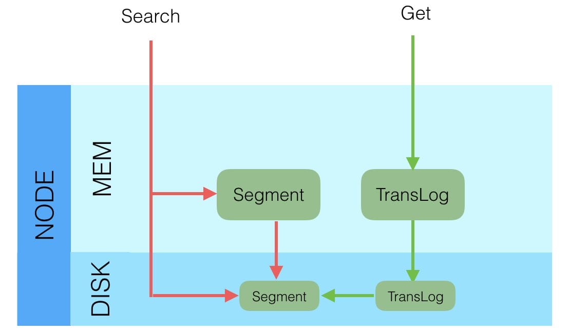 对于Get类请求,查询的时候是先查询内存中的TransLog,如果找到就立即返回,如果没找到再查询磁盘上的TransLog,如果还没有则再去查询磁盘上的Segment。这种查询是实时(Real Time)的。这种查询顺序可以保证查询到的Doc是最新版本的Doc,这个功能也是为了保证NoSQL场景下的实时性要求。