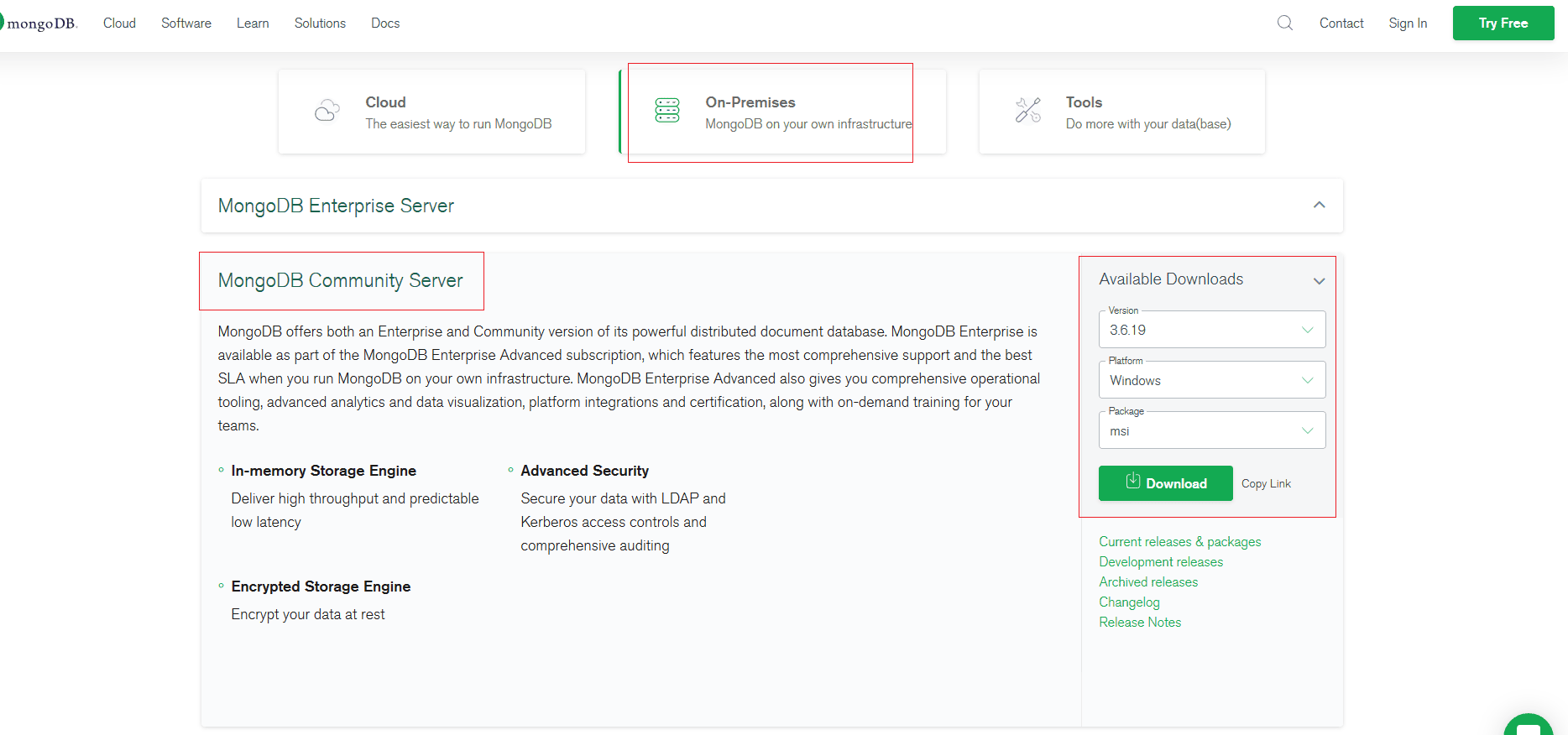 MongoDB的安装比较简单,这里主要给出官方的下载地址,以及官方安装文档的地址,方便大家直达。