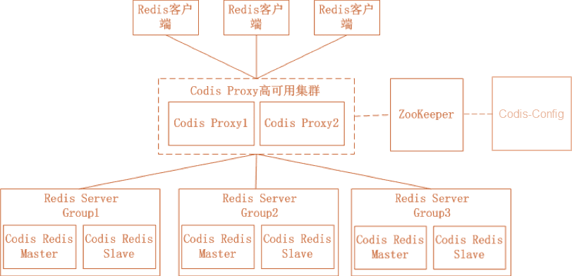 Codis 是由豌豆荚开源的产品,涉及组件众多,其中 ZooKeeper 存放路由表和代理节点元数据、分发 Codis-Config 的命令;Codis-Config 是集成管理工具,有 Web 界面供使用;Codis-Proxy 是一个兼容 Redis 协议的无状态代理;Codis-Redis 基于 Redis 2.8 版本二次开发,加入 slot 支持,方便迁移数据。