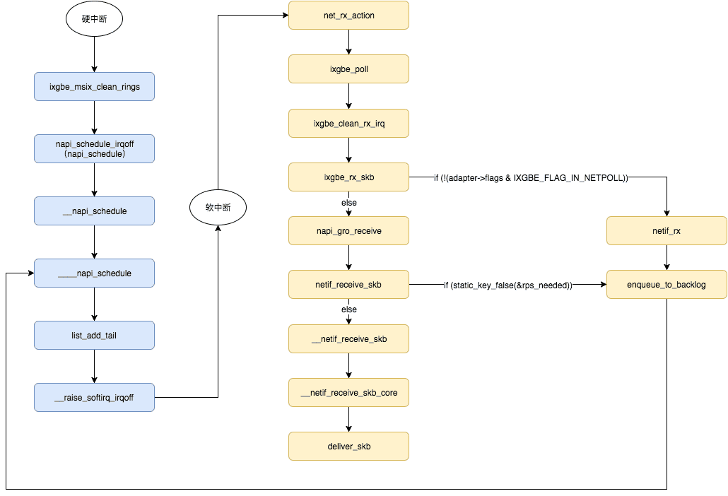 通过加载网卡驱动,获取网卡型号和网卡硬件的队列数;但是在初始化misx vector的时候,还会结合系统在线CPU的数量,通过Sum = Min(网卡队列,CPU Core) 来激活相应的网卡队列数量,并申请Sum个中断号。