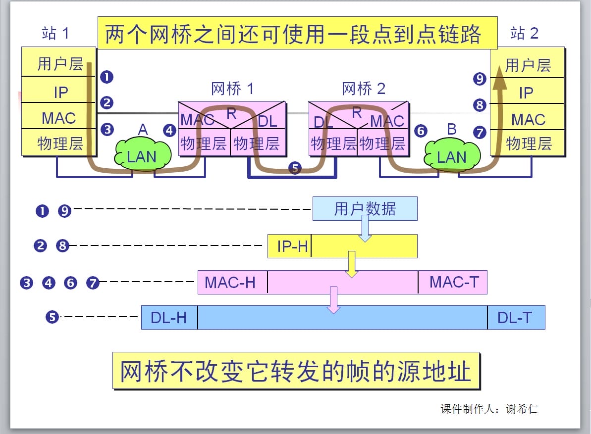- 具有不同 MAC 子层的网段桥接在一起时时延更大。