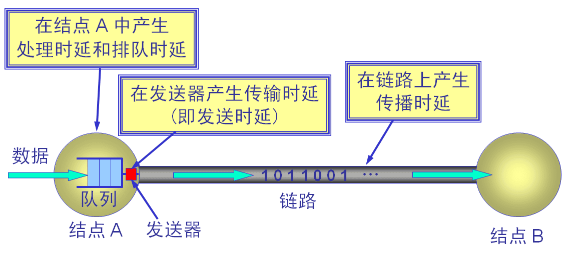 排队时延 结点缓存队列中分组排队所经历的时延。