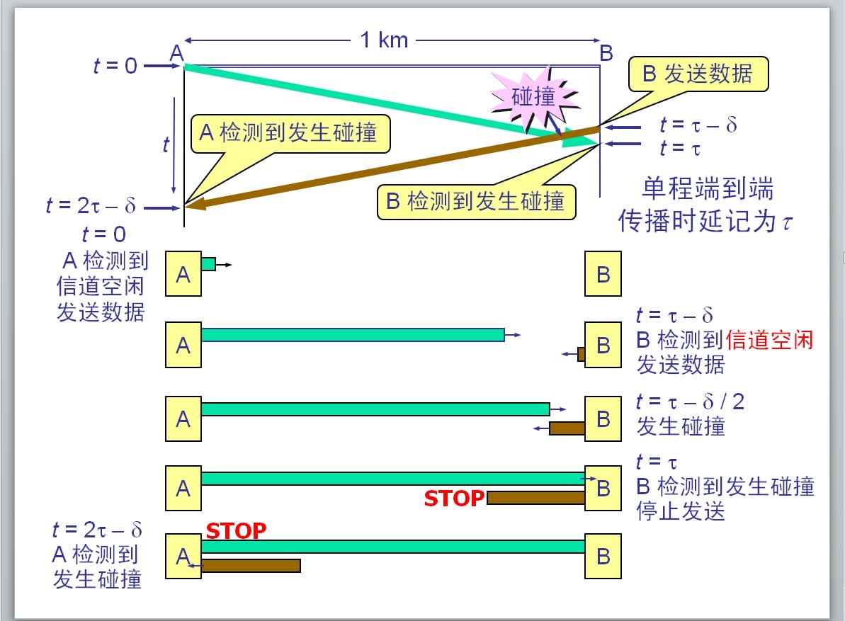 - 若在发送过程中出现碰撞,就必须停止发送和进行退避。