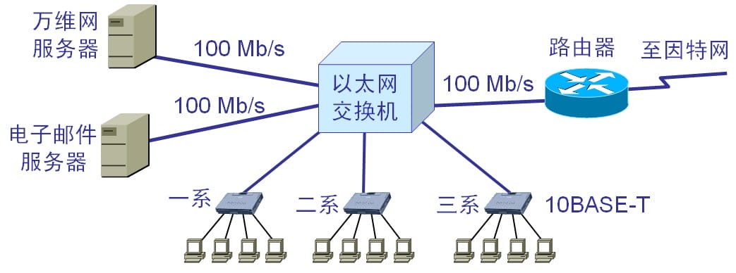- 以太网交换机由于使用了专用的交换结构芯片,其交换速率就较高。