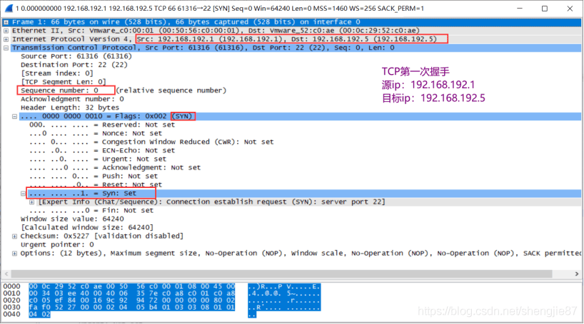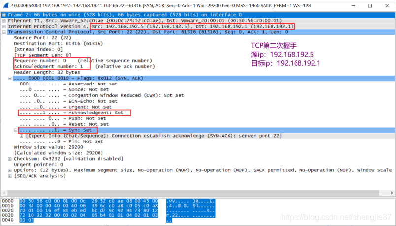 首先看下TCP报文首部,和wireshark捕获到的TCP包中的每个字段如下图所示: