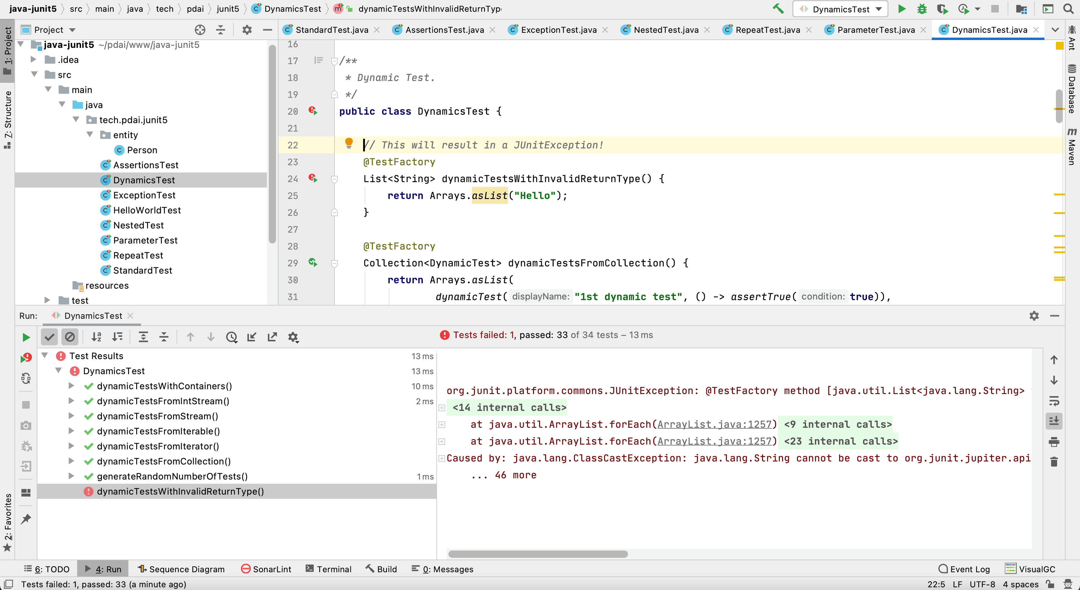 dynamicTest("2nd dynamic test", () -> assertEquals(4, 2 * 2))