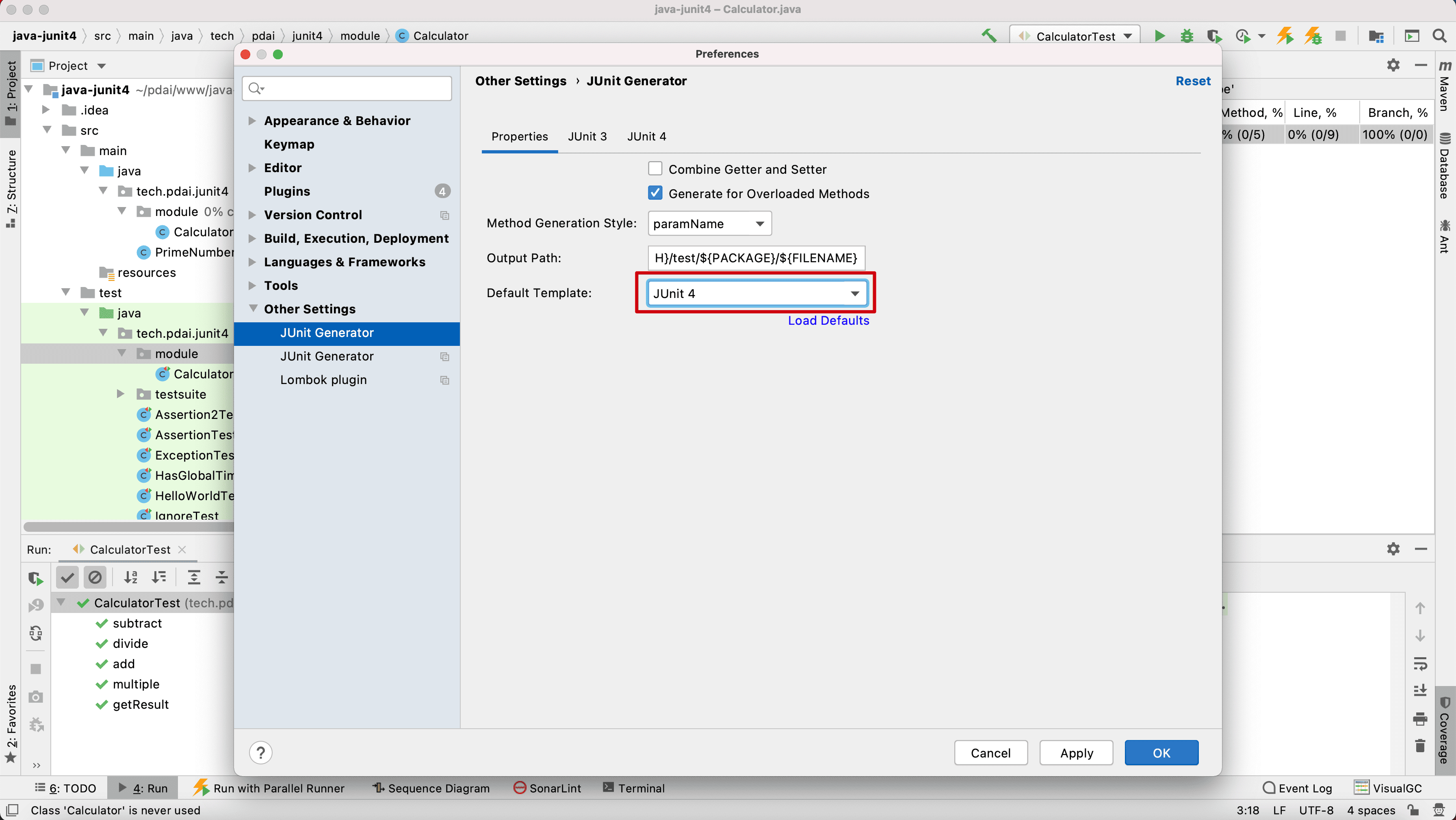 设置默认采用Junit4