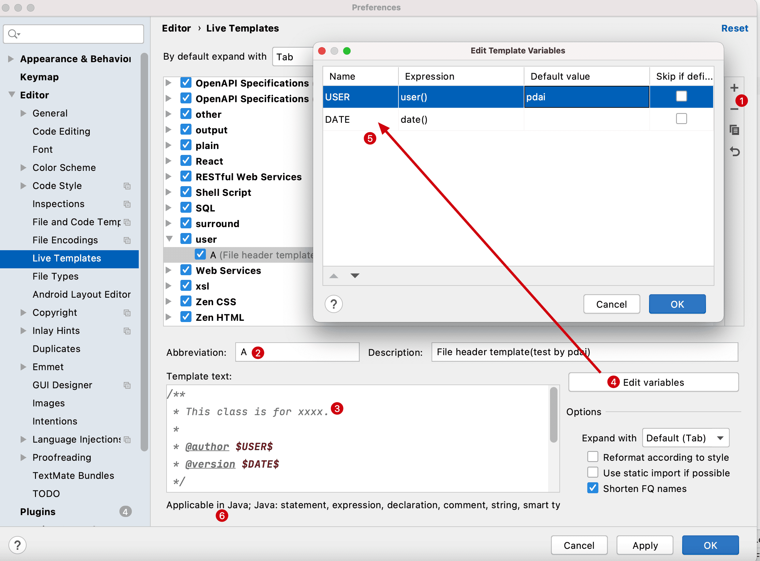 当然,如果你发现对已经存在的类进行类注释'/**'时无法自动加入上述注释时,还可以使用Live Template