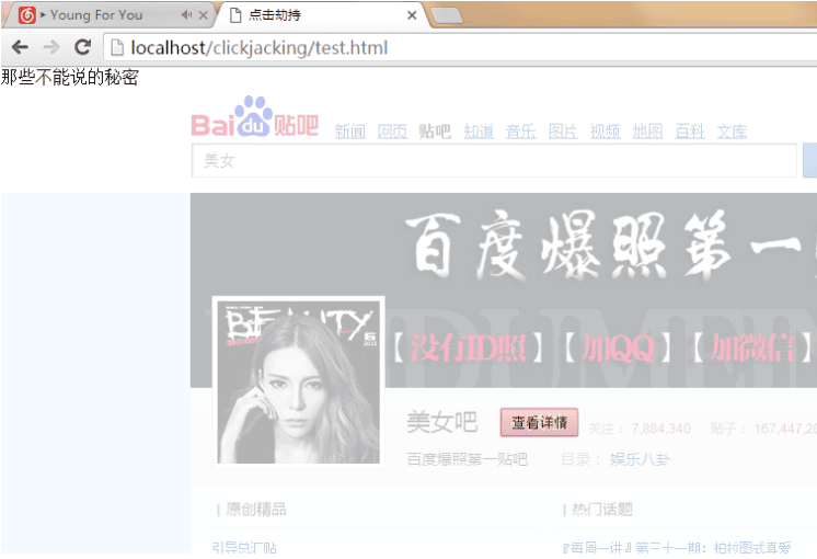 假如我们在百度有个贴吧,想偷偷让别人关注它。于是我们准备一个页面: