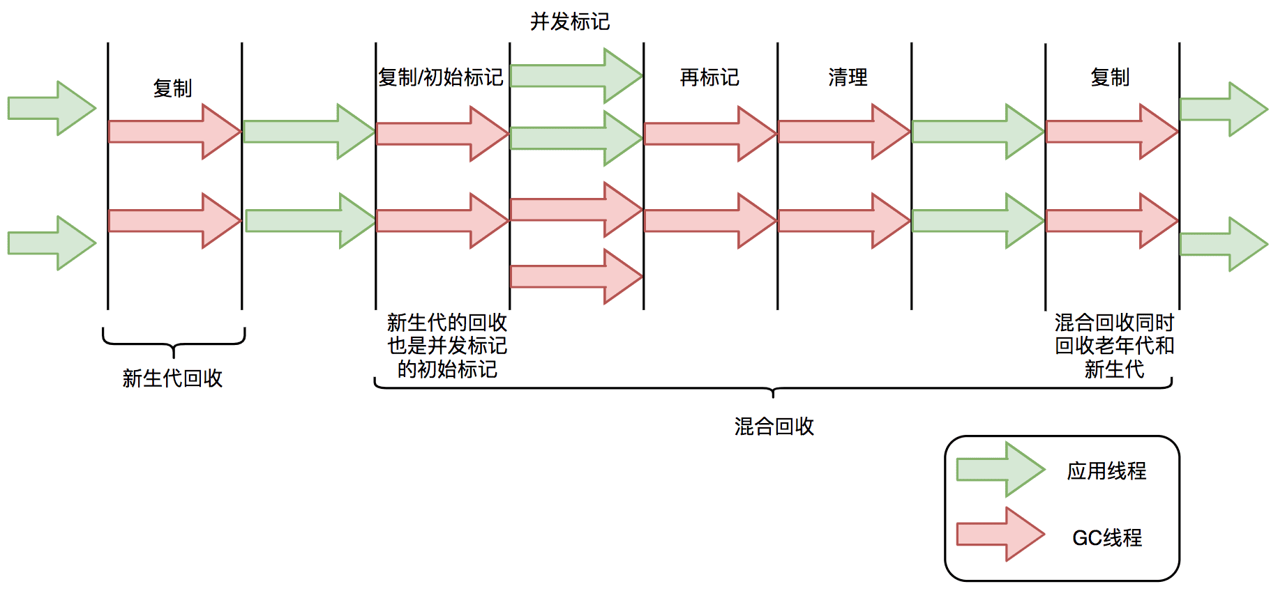 G1的Young GC和CMS的Young GC,其标记-复制全过程STW,这里不再详细阐述。