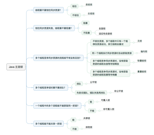 Java中往往是按照是否含有某一特性来定义锁,我们通过特性将锁进行分组归类,再使用对比的方式进行介绍,帮助大家更快捷的理解相关知识。下面给出本文内容的总体分类目录: