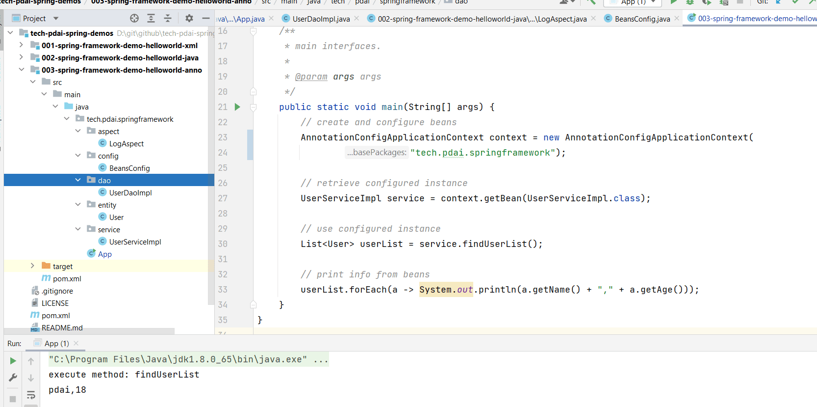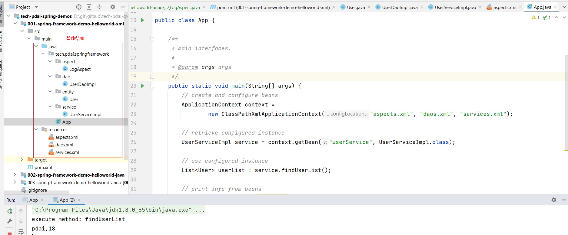 - User,UserDaoImpl, UserServiceImpl,LogAspect不用改