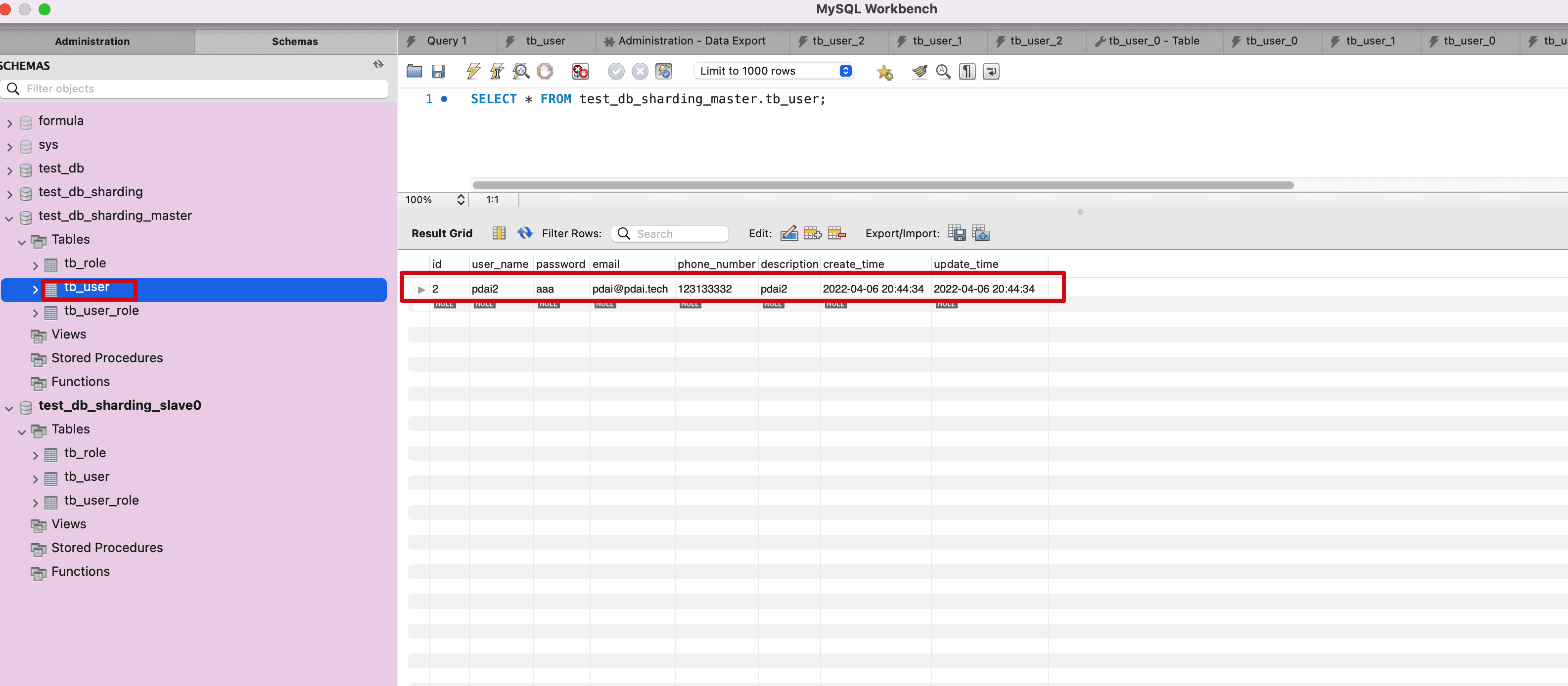 2022-04-06 20:44:34.128 INFO 26013 --- [nio-8080-exec-8] ShardingSphere-SQL : Actual SQL: master ::: insert into tb_user (create_time, description, email, password, phone_number, update_time, user_name) values (?, ?, ?, ?, ?, ?, ?)