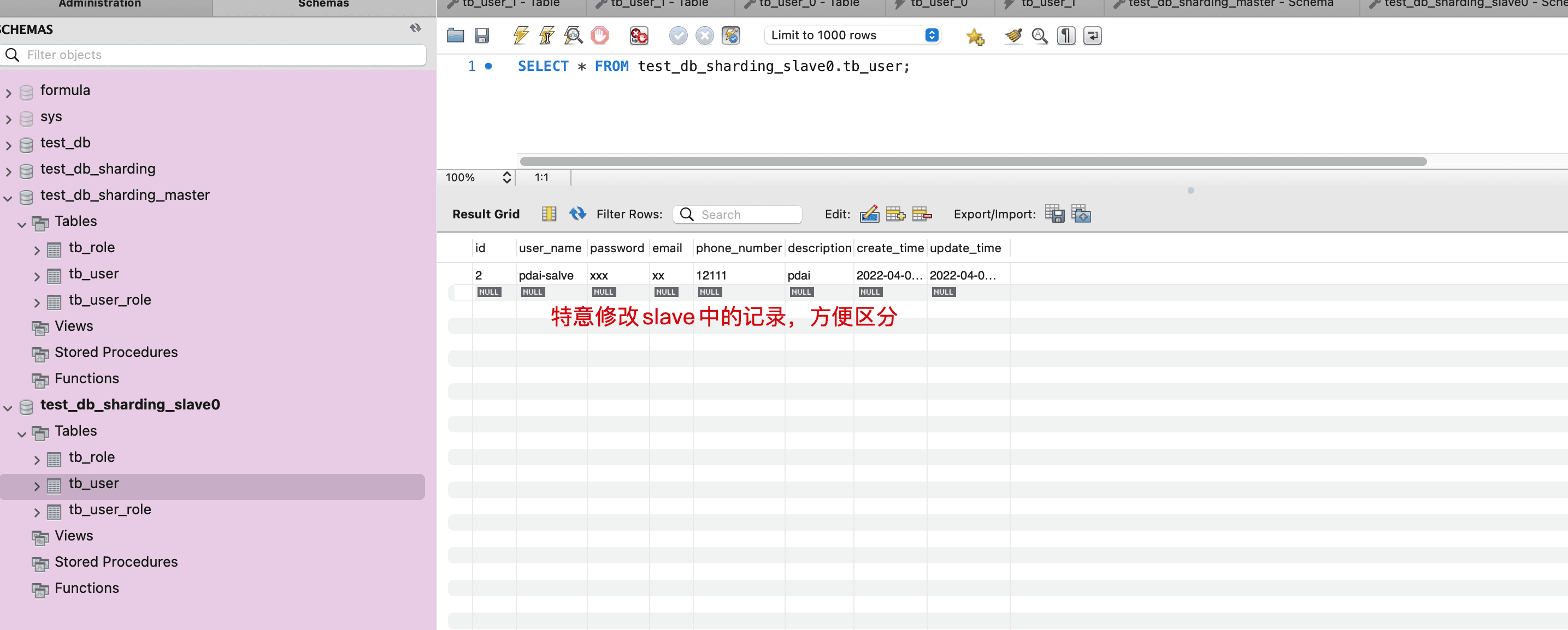 (注意:主库和从库的数据同步不是shardingJDBC做的,需要自行同步)