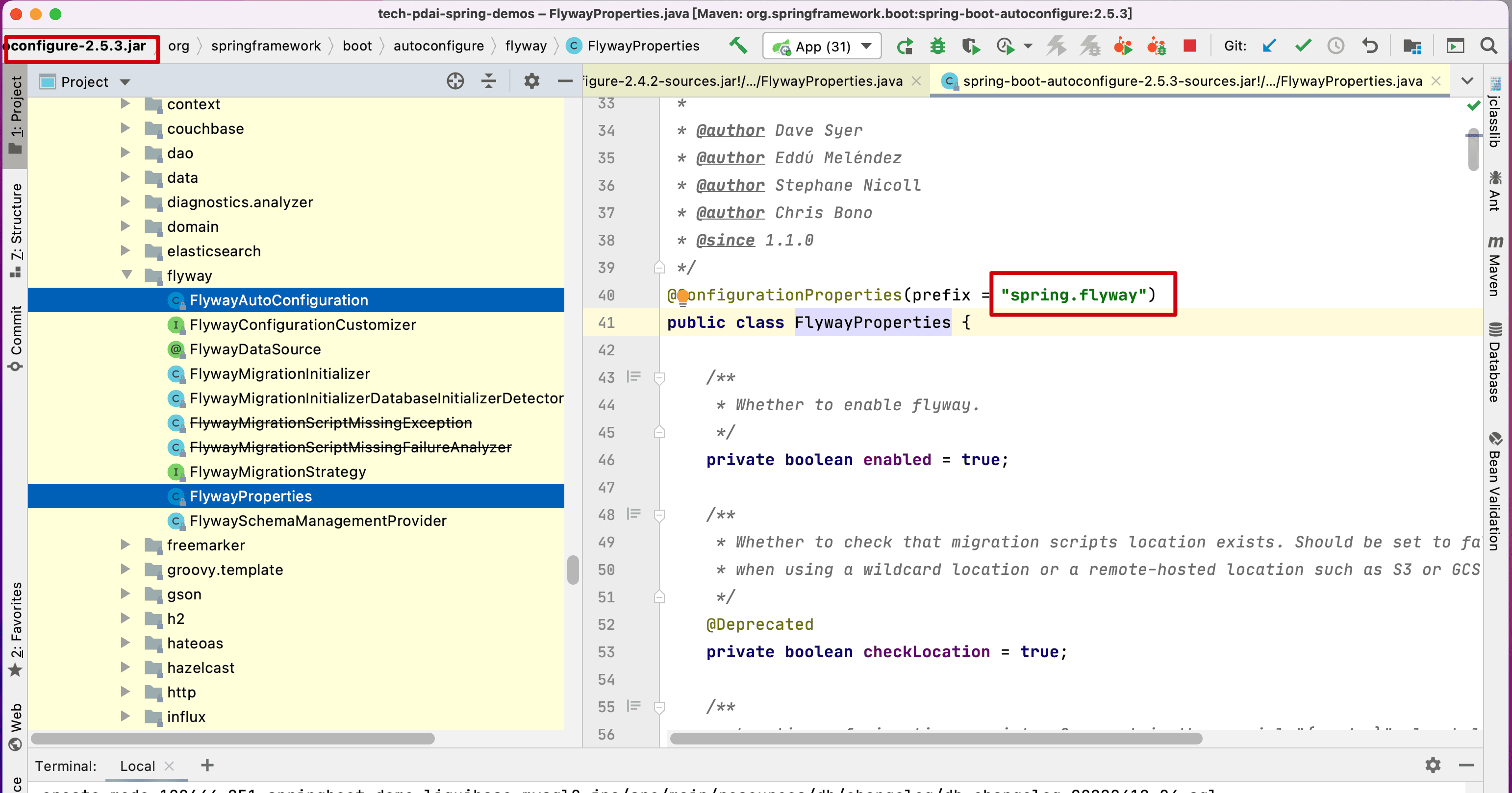 SpringBoot AutoConfig默认已经包含了对flyway的配置,在spring.flyway配置下