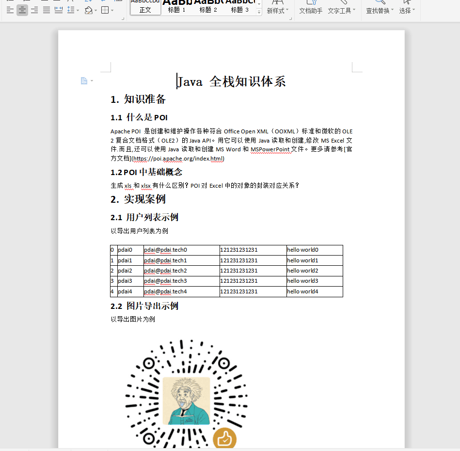 这里展示SpringBoot集成POI导出用户信息的Word例子。
