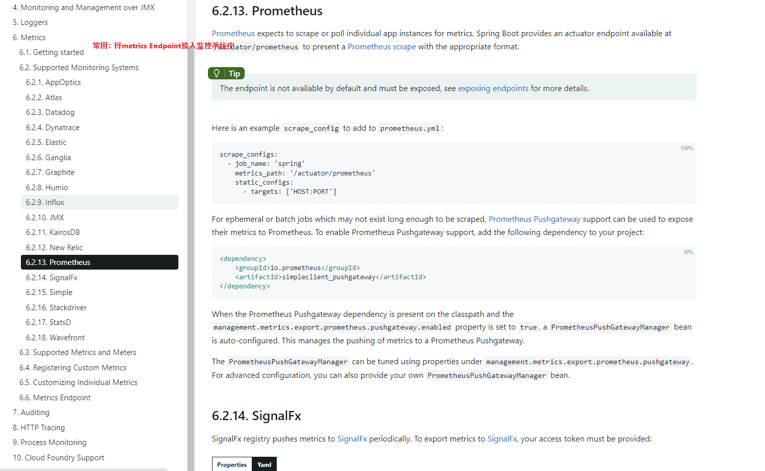 | prometheus | N/A | No | (web应用时)向prometheus暴露监控信息(依赖micrometer-registry-prometheus) |