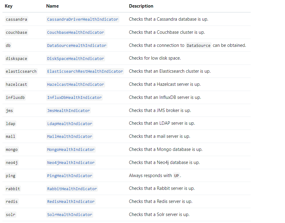 SpringBoot默认集成了如下常见中间件的health监控