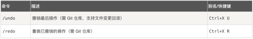 - /undo 和 /redo 需要项目是 Git 仓库才能回滚文件变更。