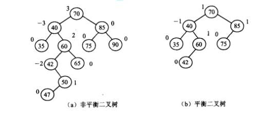 - 二叉树节点的平衡因子定义为该节点的左子树的深度减去右子树的深度。则平衡二叉树的所有节点的平衡因子只可能是-1,0,1。