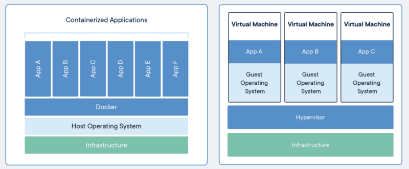 虚拟机由某些特定的硬件和内核虚拟化组成,运行客户操作系统。称为管理程序的软件创建虚拟化硬件,其可以包括虚拟磁盘,虚拟网络接口,虚拟 CPU 等。虚拟机还包括可以与此虚拟硬件通信的宾客内核。管理程序可以托管,这意味着它是一些在主机操作系统(MacOS)上运行的软件,如示例中所示。它也可以是裸机,直接在机器硬件上运行(替换你的操作系统)。无论哪种方式,管理程序方法都被认为是重量级的,因为它需要虚拟化多个部分(如果不是全部硬件和内核)。