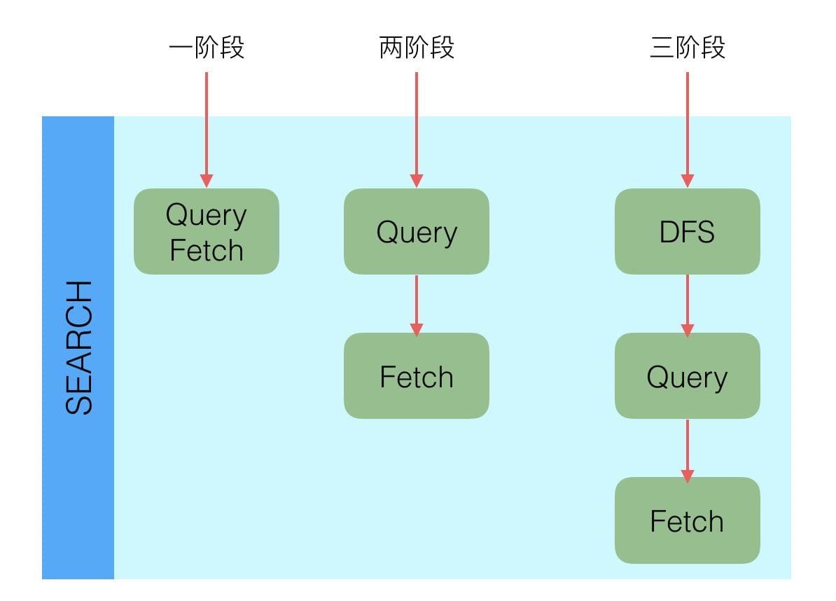 所有的搜索系统一般都是两阶段查询,第一阶段查询到匹配的DocID,第二阶段再查询DocID对应的完整文档,这种在Elasticsearch中称为query_then_fetch,还有一种是一阶段查询的时候就返回完整Doc,在Elasticsearch中称作query_and_fetch,一般第二种适用于只需要查询一个Shard的请求。