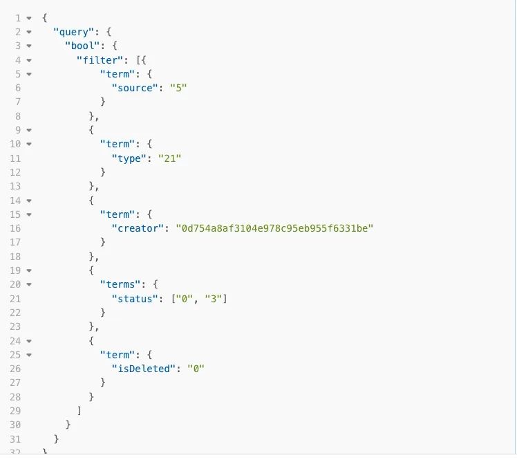 这个查询问题还挺多的,不过不是今天的重点。比如这里面不好的一点是还用了模糊查询fuzzy_transpositions,也就是查询ab的时候,ba也会被命中,其中的语法不是今天的重点,可以自行查询,我估计这个是业务用了SDK自动生成的,里面很多都是默认值。
