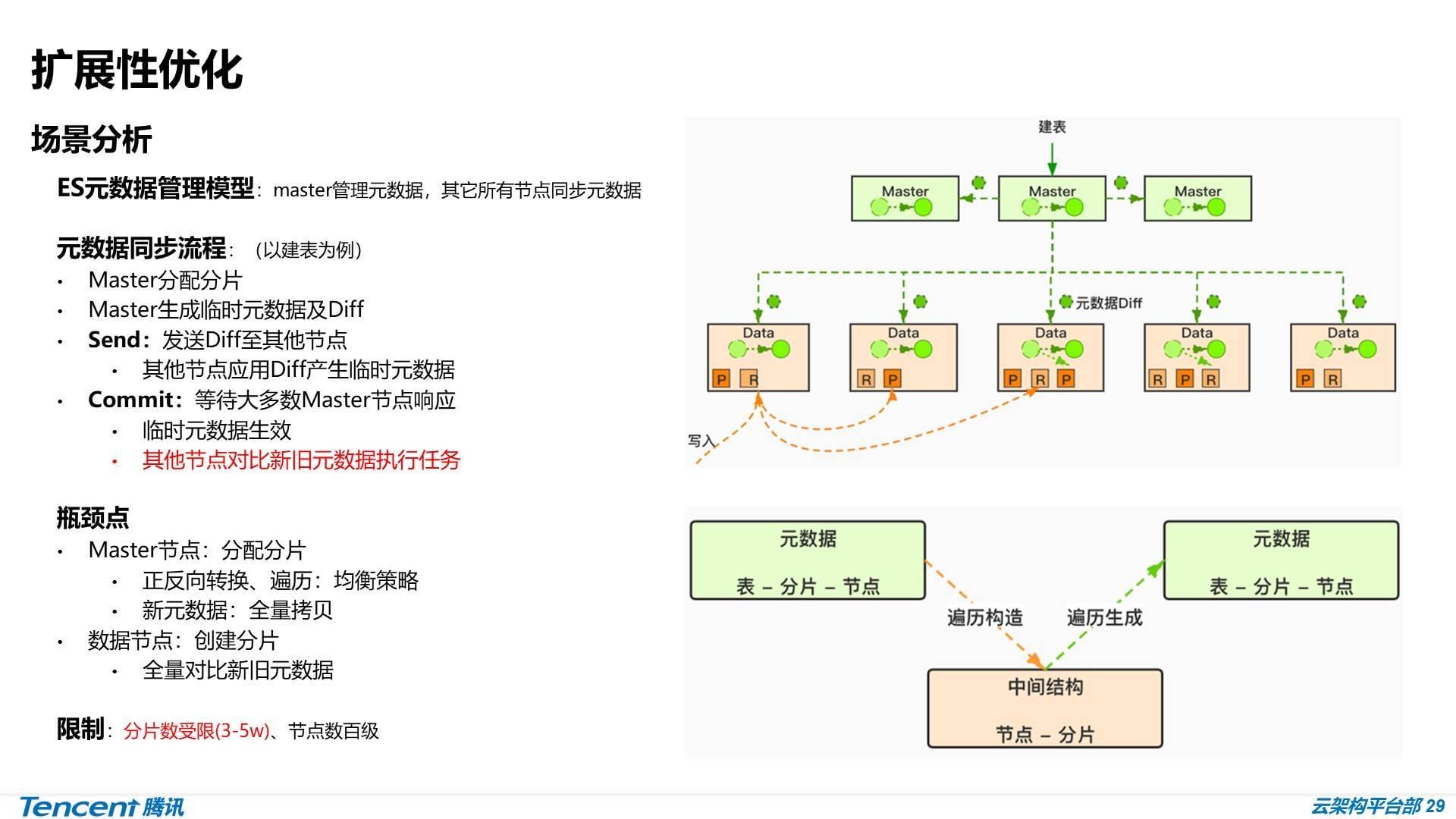 - 在每次索引创建的过程中,会涉及多次的元数据同步,在大规模的节点数场景,会出现同步瓶颈,上千节点,部分节点假设有一点网络抖动或 Old GC 可能导致同步失败。