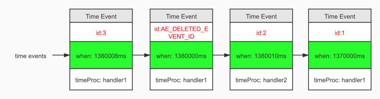 而processTimeEvents是处理时间事件的函数,它会遍历aeEventLoop的事件事件列表,如果时间事件到达就执行其timeProc函数,并根据函数的返回值是否等于AE_NOMORE来决定该时间事件是否是周期性事件,并修改器到达时间。