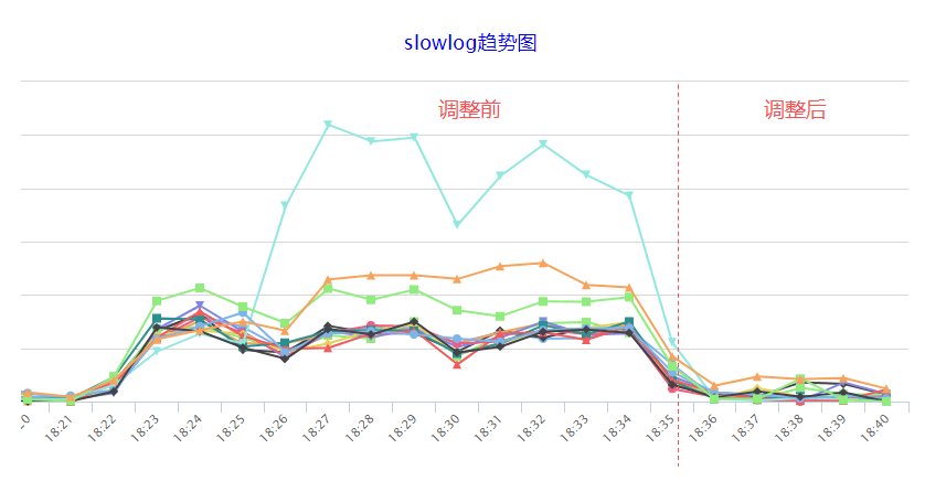 使用命令taskset可以为进程设置CPU亲缘性,操作十分简单,一句taskset -cp cpu-list pid即可完成绑定。经过一番压测,我们发现使用8个core处理中断时,流量直至打满双万兆网卡也不会出现丢包,因此决定将中断的亲缘性设置为物理机上前8个core,Redis进程的亲缘性设置为剩下的所有core。调整后,确实有明显的效果,慢查询数量大幅优化,但对比初始情况,仍然还是高了一些些,还有没有优化空间呢?
