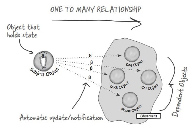 主题(Subject)是被观察的对象,而其所有依赖者(Observer)称为观察者。