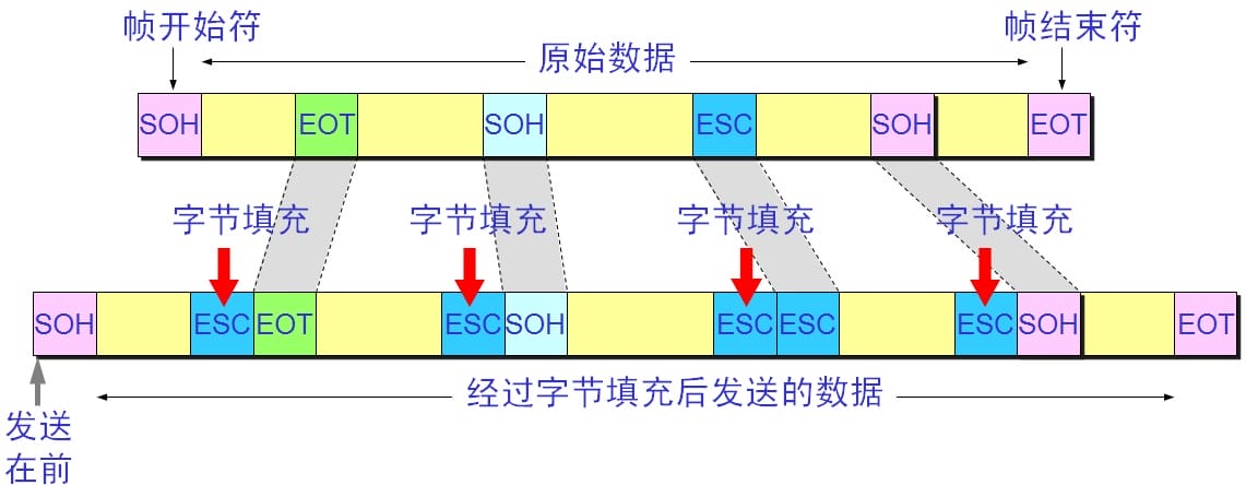 - 当数据字段的长度小于 46 字节时,应在数据字段的后面加入整数字节的填充字段,以保证以太网的 MAC 帧长不小于 64 字节。