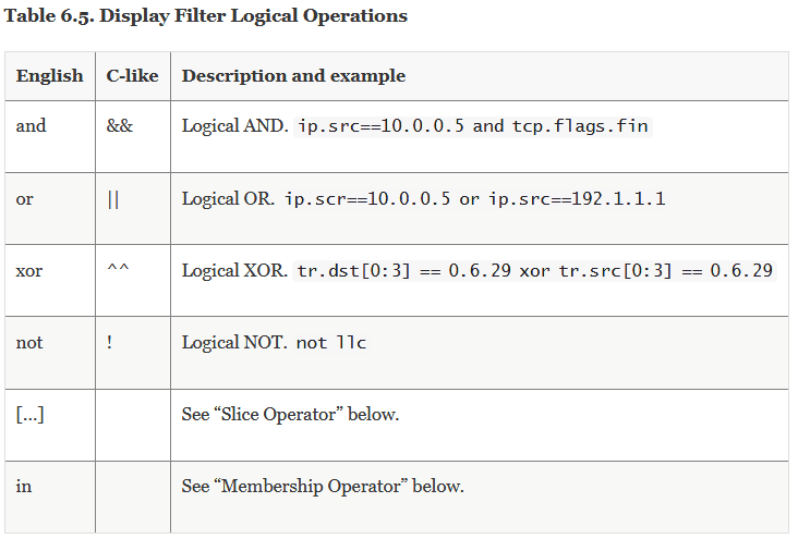 我们依然直接参照官方给出的表,同样"English"和"C-like"这两个字段还是说明这两种写法在wireshark中是等价的、都是可用的。
