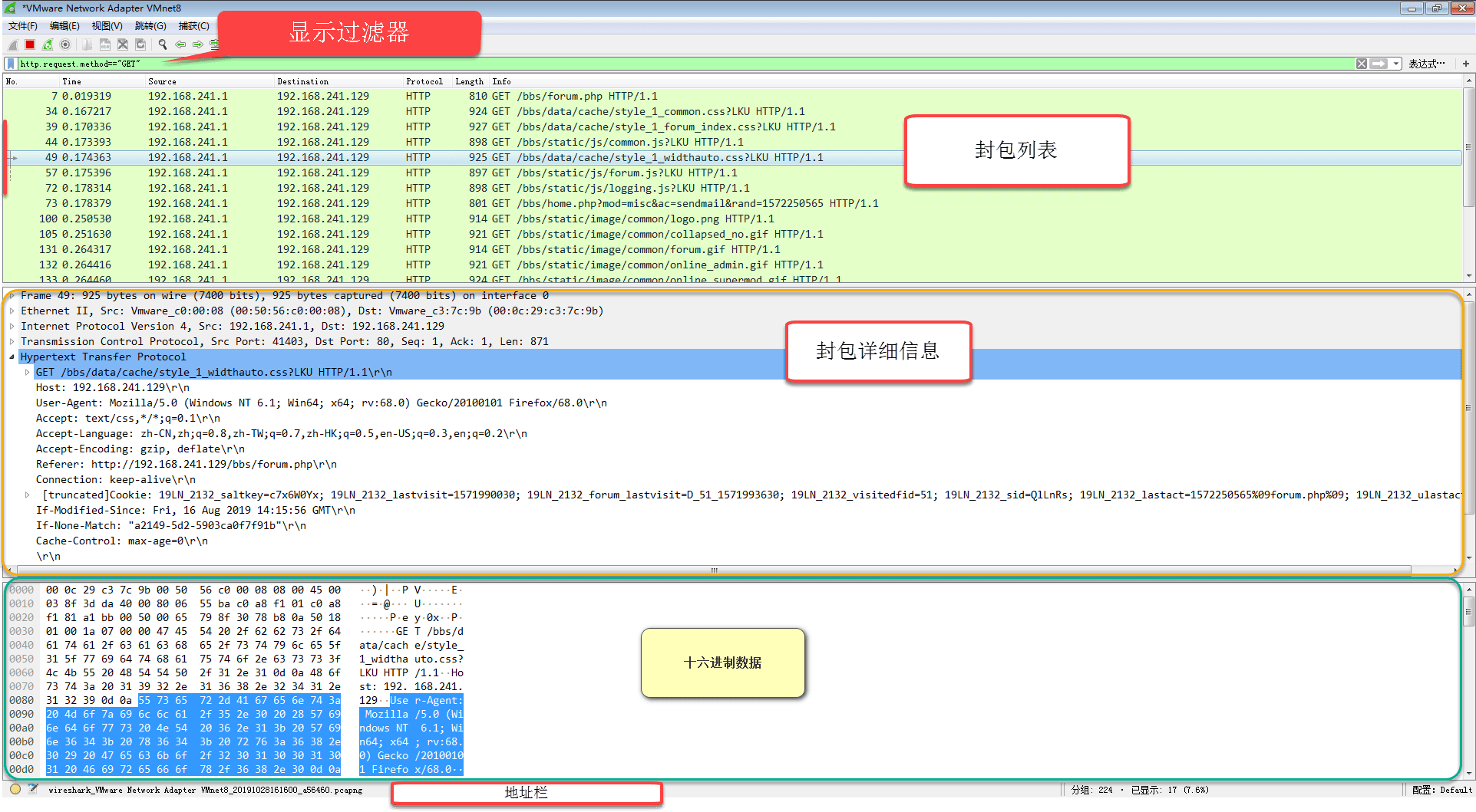 筛选url中包含.php的http数据包----http.request.uri contains ".php"