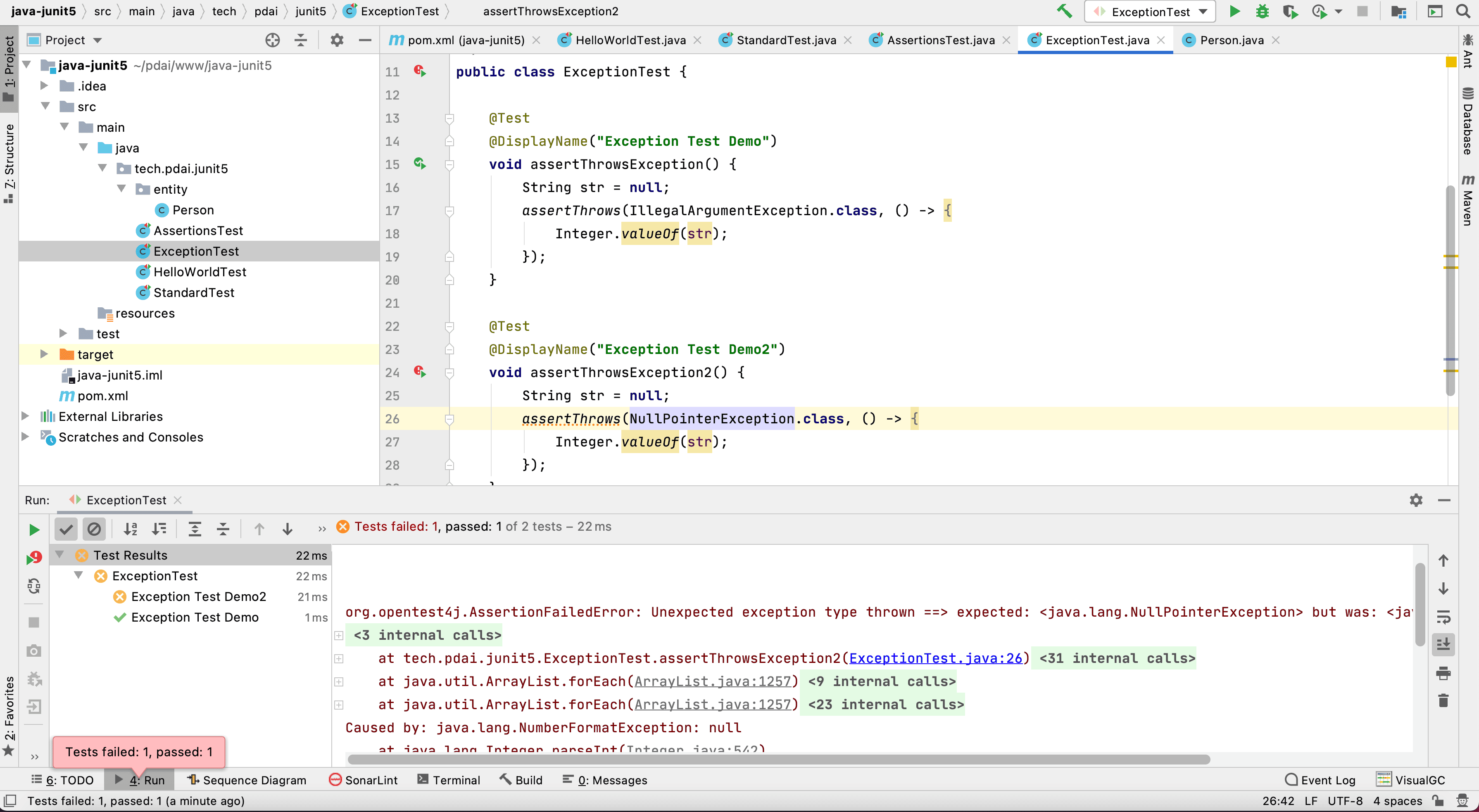 .mapToObj(n -> dynamicTest("test" + n, () -> assertTrue(n % 2 == 0)));