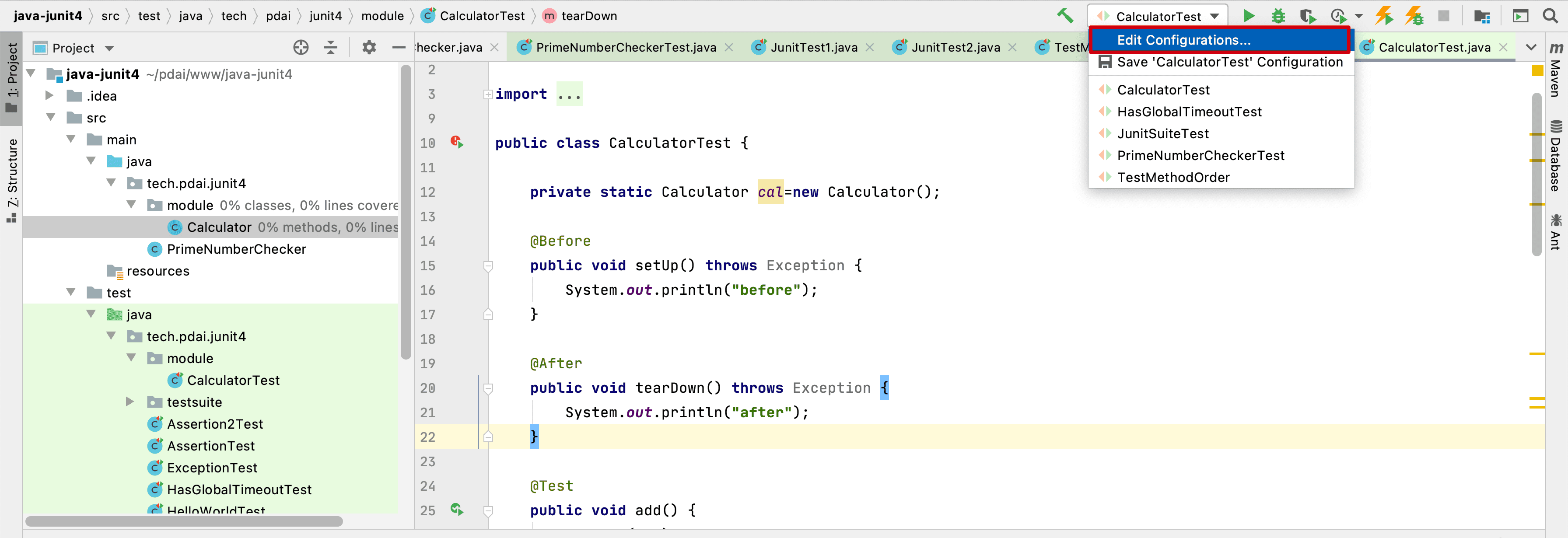 设置默认采用Junit4
