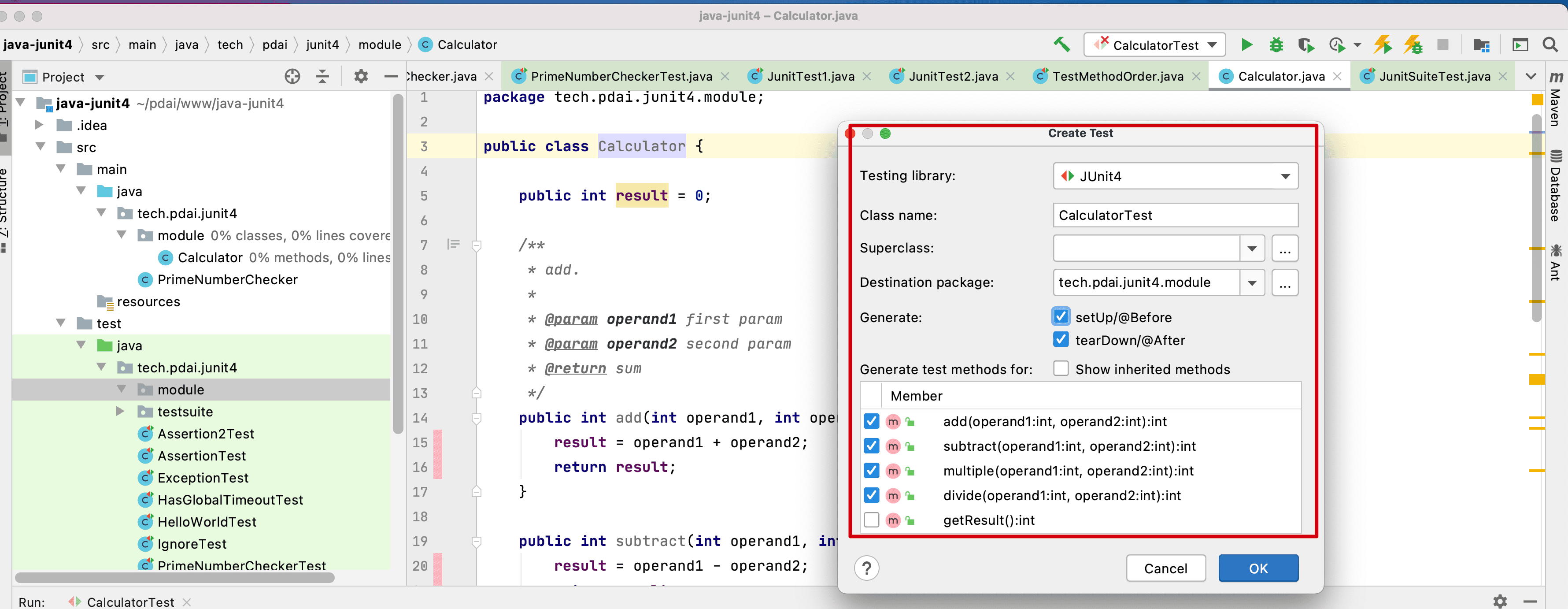assertEquals(4,cal.getResult());