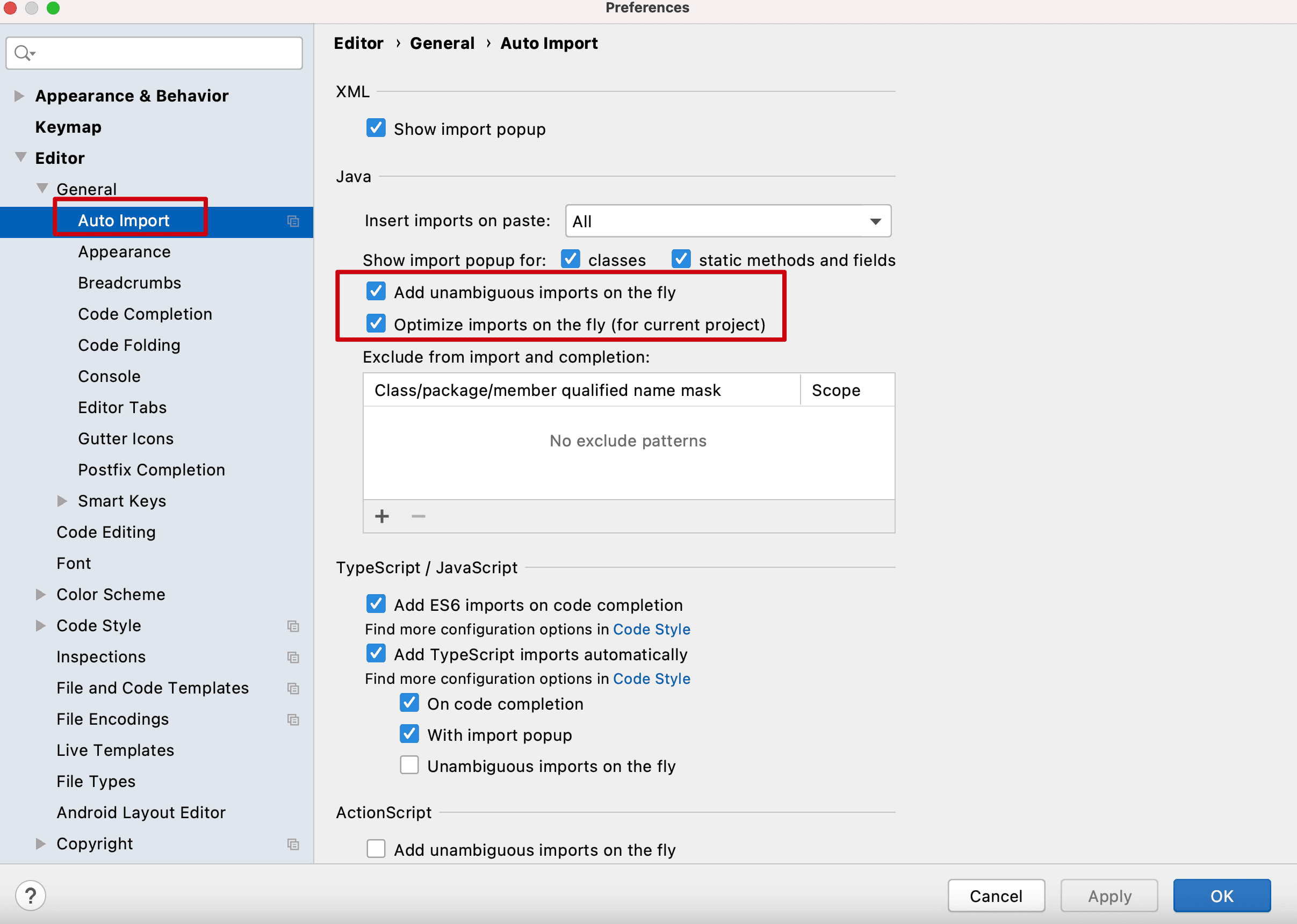 - 配置自动导入包