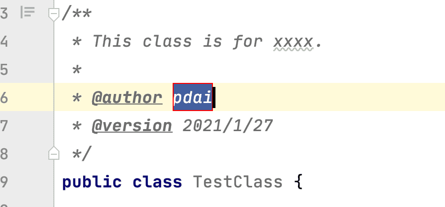 测试下, 创建一个类TestClass,将自动生成文件头注释