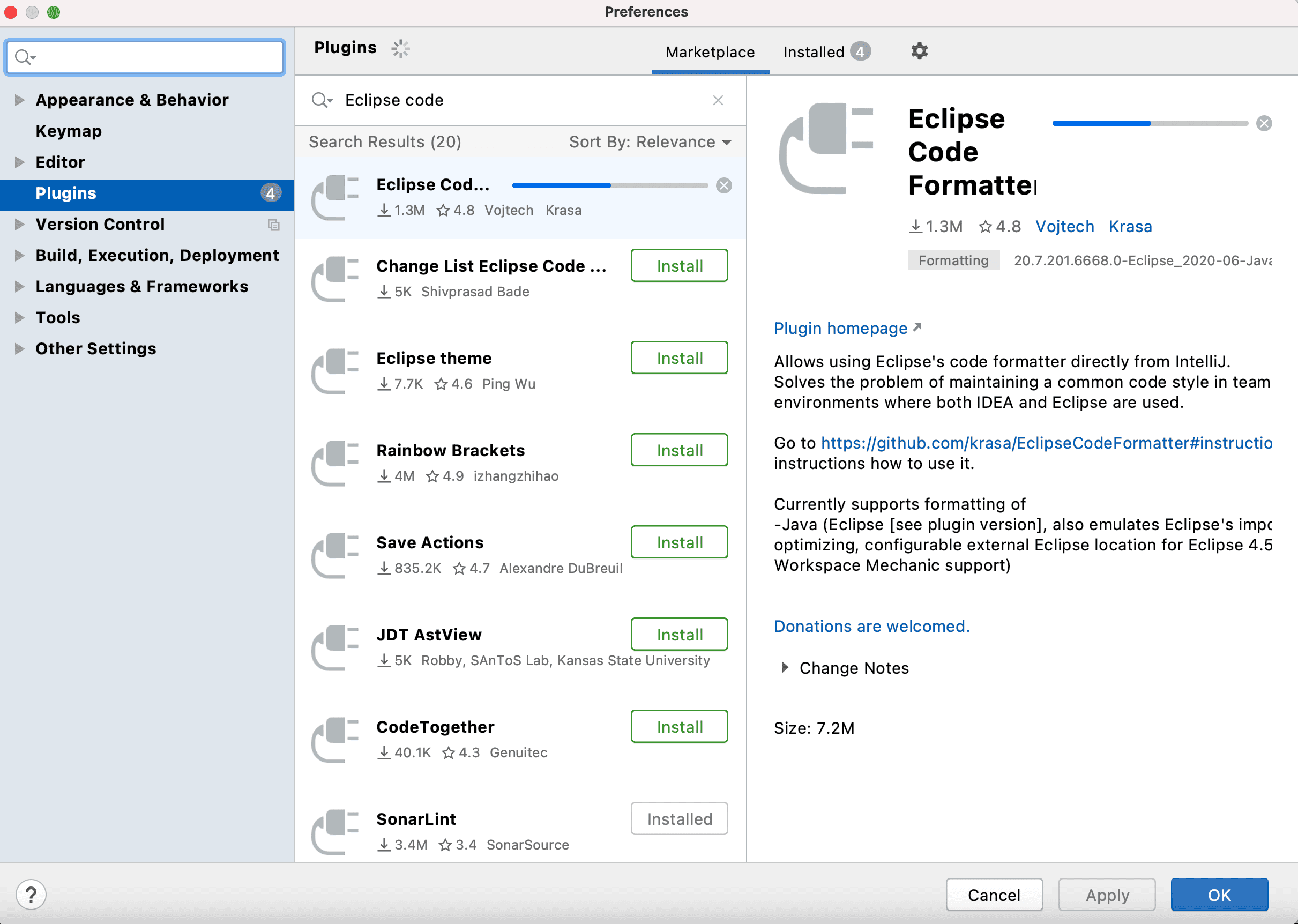 - 安装Eclipse Code Formatter插件:
