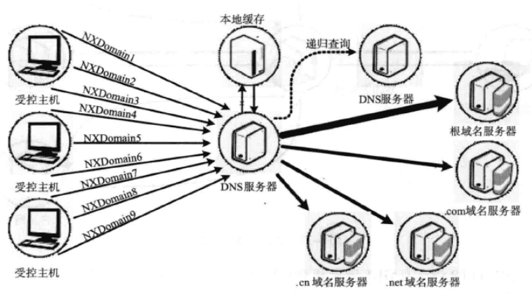 DNS NXDOMAIN洪水攻击是DNS QUERY洪水攻击的一个变种攻击方式,区别在于后者是向DNS服务器查询一个真实存在的域名,而前者是向DNS服务器查询一个不存在的域名。(NXDOMAIN = Non-eXistent Domain)