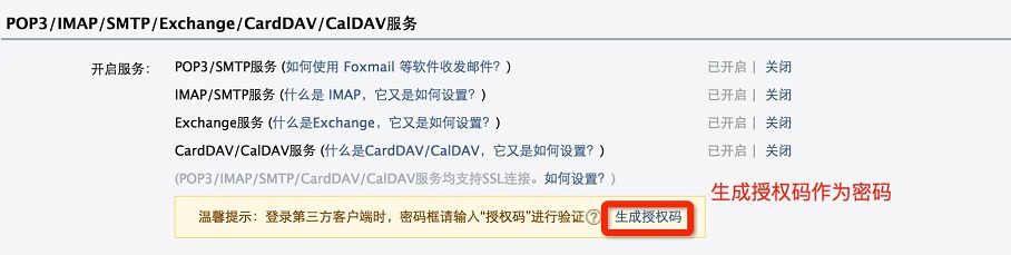 QQ 邮箱通过生成授权码来设置密码: