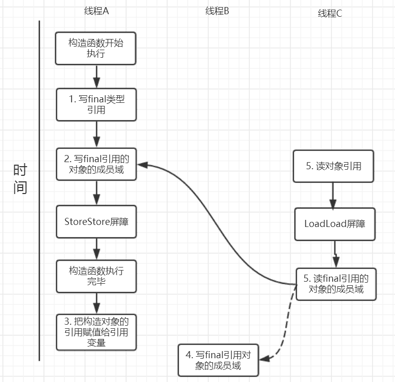 - 额外增加约束:禁止在构造函数对一个final修饰的对象的成员域的写入与随后将这个被构造的对象的引用赋值给引用变量 重排序