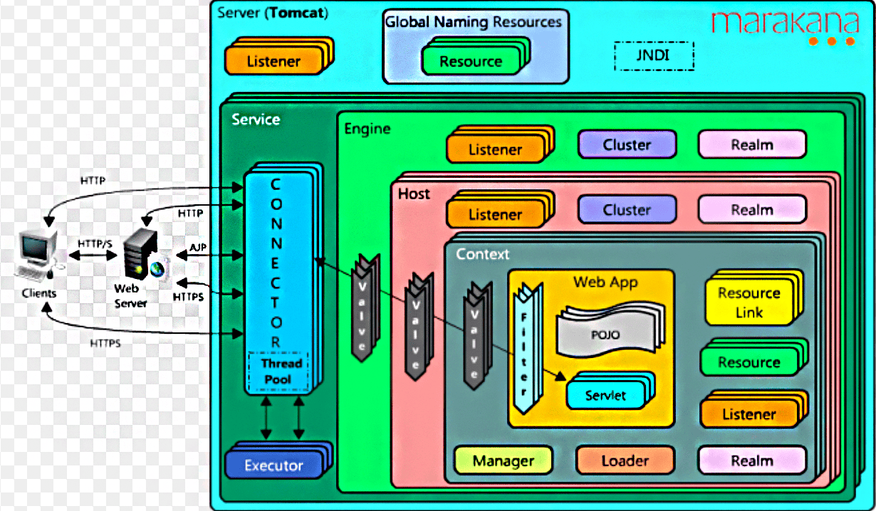- 在理解了Server,Service和Executor后,我们可以进入Request处理环节了。我们知道客户端是可以发起多个请求的,Tomcat也是可以支持多个webapp的,有多个上下文,且一个webapp中可以有多个Servlet...等等,那么Tomcat是如何设计组件来支撑请求处理的呢?本节文将介绍Tomcat的Container设计。