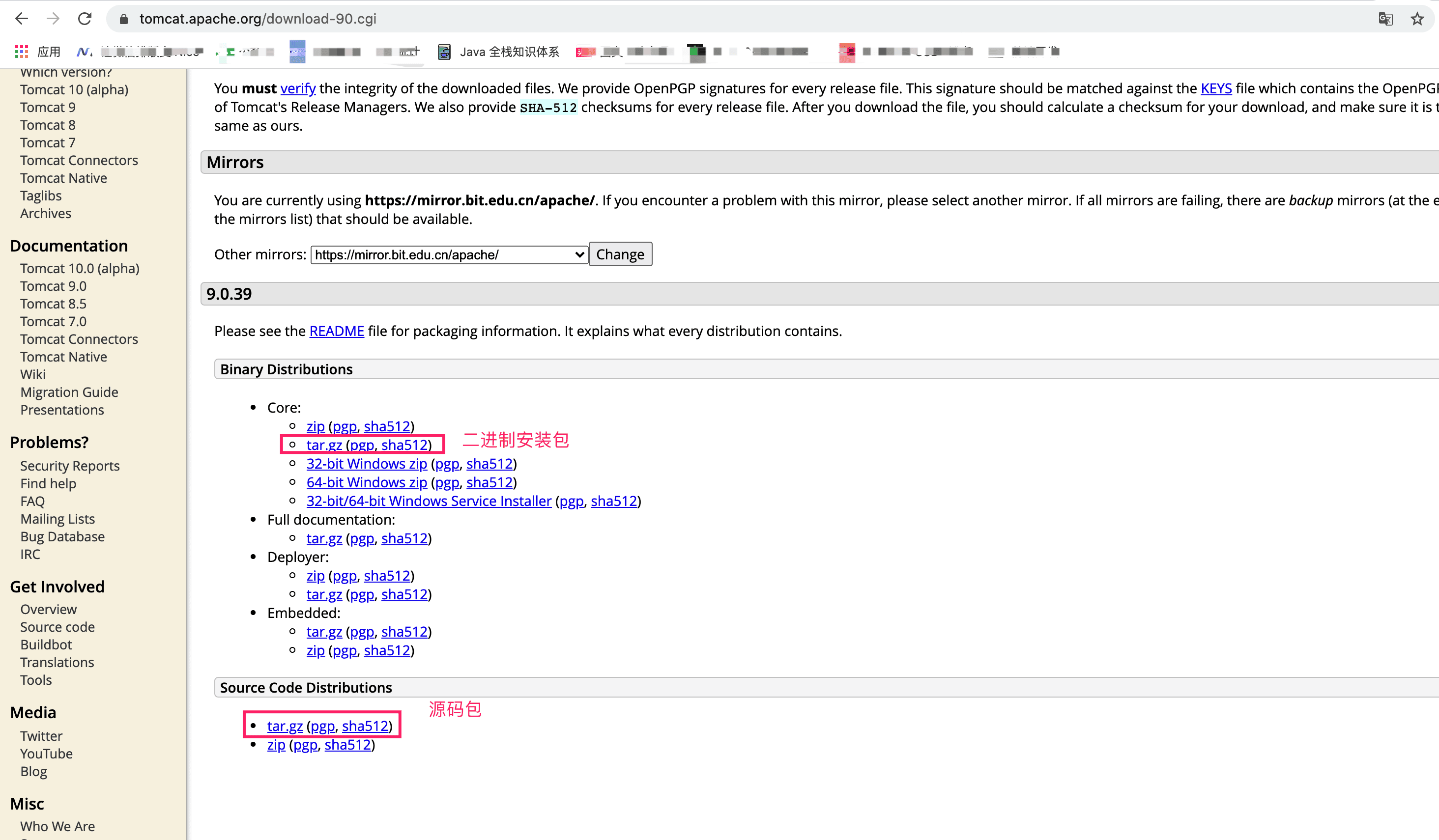 首先是去官网下载Tomcat的源代码和二进制安装包,我这里分析最新的Tomcat9.0.39稳定版本 在新窗口打开 (opens new window)https://tomcat.apache.org/download-90.cgi