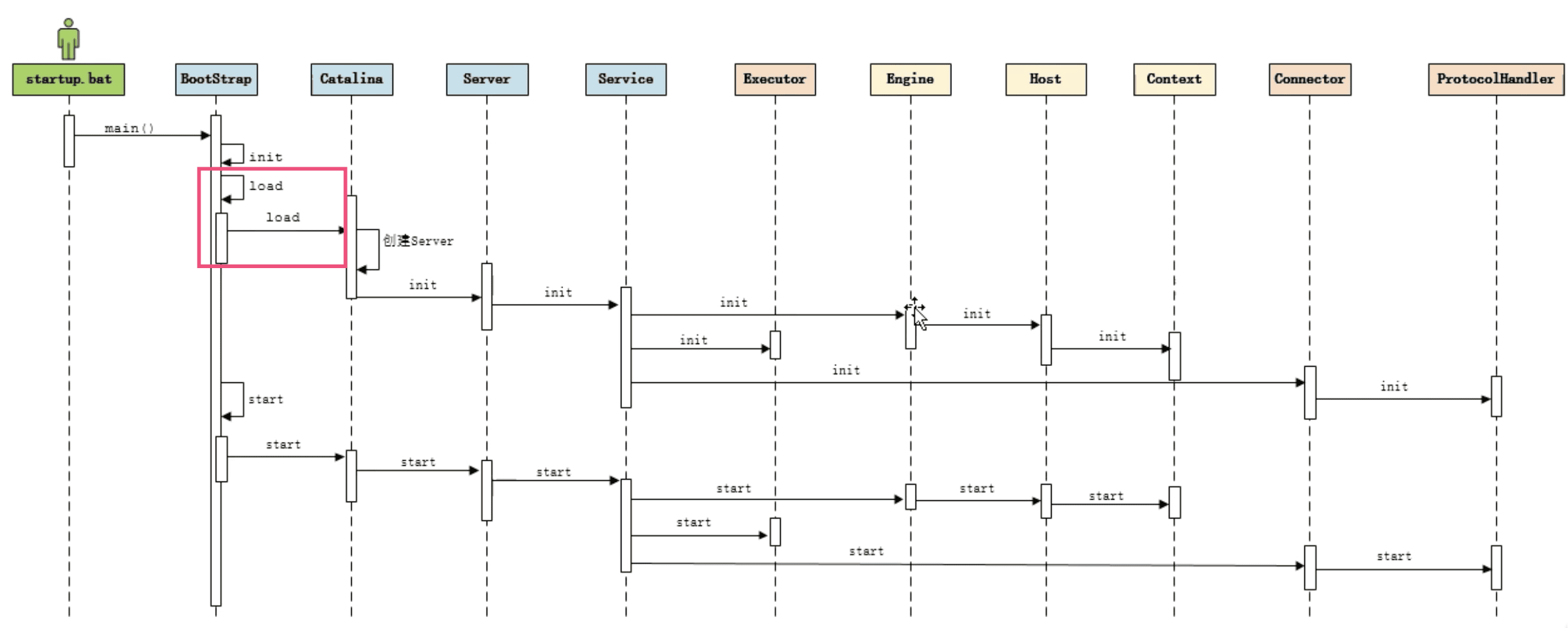Catalina 类承接了 Bootstrap 类的 load 和 start 方法,然后根据配置初始化了 Tomcat 的组件,并调用了 Server 类的 init 和 start 方法来启动 Tomcat。